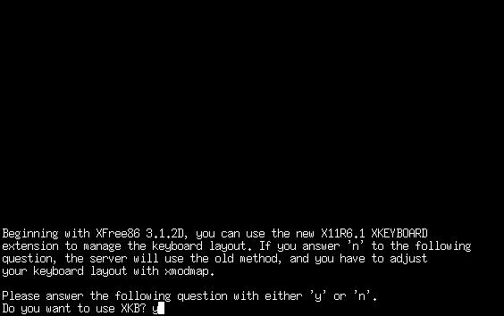 You will probably want to use the X keyboard extensions. Not choosing this will cause some strange behavior with the backspace and delete keys. Choosing the keyboard extensions will cause keys to behave like they should.